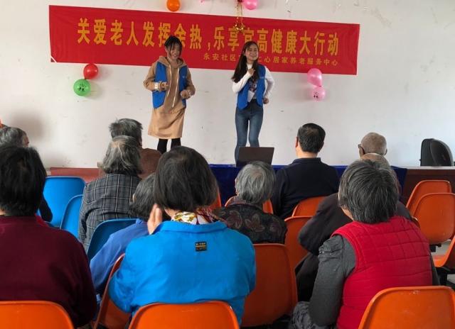 在養(yǎng)老中心,志愿者們首先給老人們普及了防火防騙知識以及突發(fā)情況的措施,同時(shí)也給老人們帶來了最受歡迎的廣場舞《最炫民族風(fēng)》,最后全體志愿者一起演唱紅歌《映山紅》、《歌唱祖國》。
