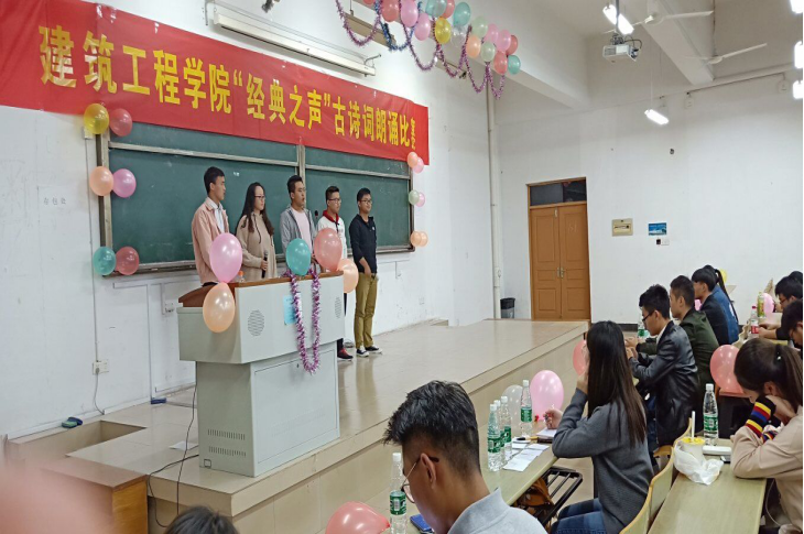 10月18日晚,建筑工程學(xué)院“經(jīng)典之聲”古詩詞朗誦比賽,在廣宇樓101舉行。本次活動由建筑工程學(xué)院團總支主辦,建筑工程學(xué)院學(xué)生會承辦。