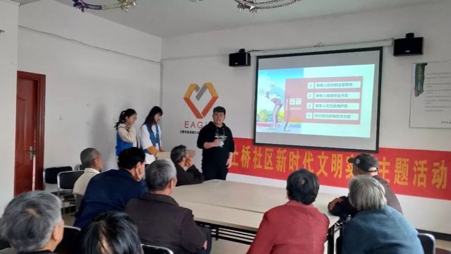 在社區(qū)人家,志愿者們給老人們普及了防騙防火的知識和常見的護(hù)理問題,表演了精心準(zhǔn)備的節(jié)目:廣場舞《小蘋果》、相聲表演、戲劇展演和歌曲演唱《明天會更好》。