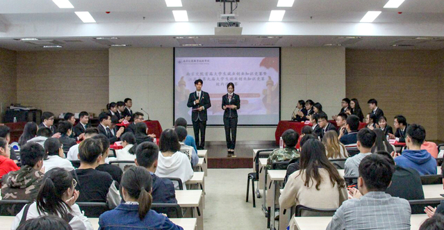 本次知識(shí)競(jìng)賽以院系為單位,每個(gè)院系代表隊(duì)由四人組成,其中指導(dǎo)教師一人,學(xué)生參賽選手三人。競(jìng)賽分為常規(guī)題、風(fēng)險(xiǎn)題和搶答題三個(gè)環(huán)節(jié),同時(shí)還增加了主持人與現(xiàn)場(chǎng)觀眾的互動(dòng)環(huán)節(jié)。競(jìng)賽過程中,選手們認(rèn)真作答,爭(zhēng)分奪秒,在互動(dòng)環(huán)節(jié),觀眾踴躍參加,場(chǎng)面十分熱烈。