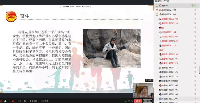 此次公開課以“新冠疫情對中國青年的啟示”為題,姬慧老師分別從愛國、自信、擔(dān)當(dāng)、奮斗四個角度講述當(dāng)代青年在構(gòu)筑疫情防控的人民防線中貢獻(xiàn)了青春力量,為群眾生命健康安全鑄就了堅實防線,彰顯了中國青年的精神面貌和責(zé)任擔(dān)當(dāng)。