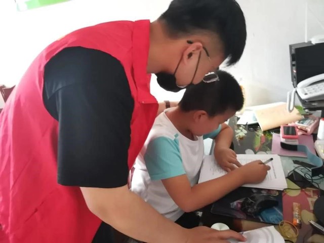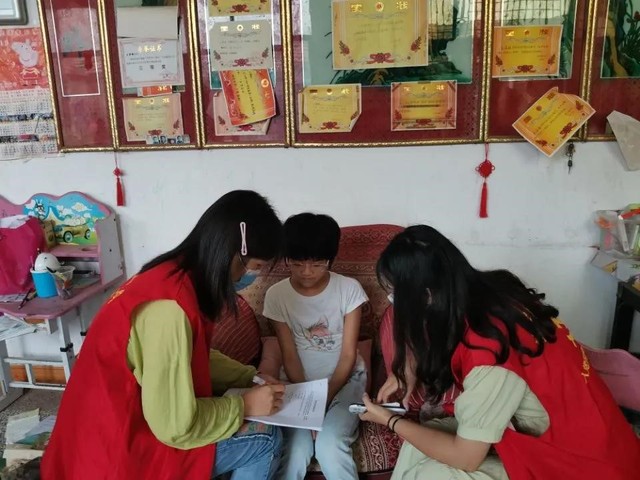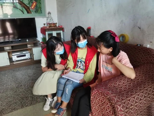 圖為志愿者正在進(jìn)行教育脫貧問卷調(diào)研