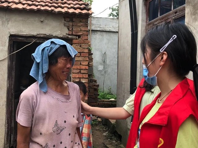 圖為一名七旬奶奶獨(dú)自帶著一名孤兒,見我們志愿者去探望,流下了感動的淚水,我們志愿者連忙安慰