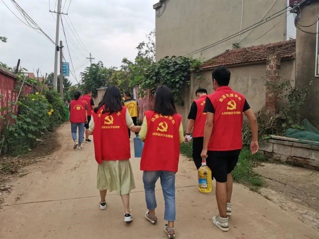 圖為實踐團(tuán)隊和小山子村領(lǐng)導(dǎo)準(zhǔn)備進(jìn)入貧困戶開展調(diào)研