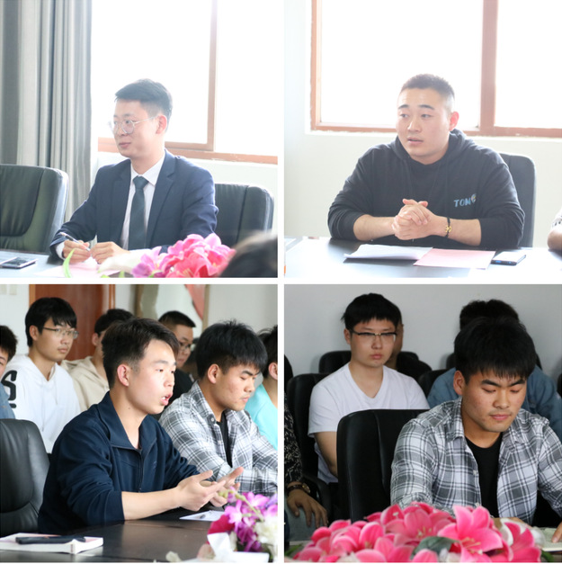 王雪琴老師帶領(lǐng)參會人員一起學(xué)習(xí)了習(xí)近平總書記在清華大學(xué)建校110周年大會講話;畢業(yè)生代表、中共預(yù)備黨員1810412班遲文俊,中共黨員1810211郭津分享了自己的青春故事;團員青年代表1910113班喻飚、1910413班萬順兩位同學(xué)圍繞繼承弘揚“愛國、進步、民主、科學(xué)”的五四運動精神進行了交流發(fā)言;全體人員與三位新團員一起舉起右拳,面對團旗莊嚴(yán)宣誓,重溫入團誓詞。