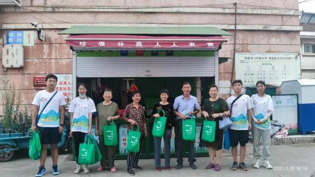 實踐團隊聚焦社區(qū)生活,在實踐地點開展“垃圾不落地,港城更美麗”垃圾分類宣傳活動,本次宣傳活動主要采取街邊互動、發(fā)放環(huán)保垃圾袋等形式,在活動現(xiàn)場向到場的村民們講解了實行垃圾分類的意義,重點講解了分類垃圾桶的投放方法和注意事項。團隊成員接過準備扔垃圾的村民們手中的垃圾袋,進行提問和交流后,將垃圾分類并放入正確垃圾桶內(nèi)。通過交流互動,有效提升實踐地生活垃圾投放的準確率。