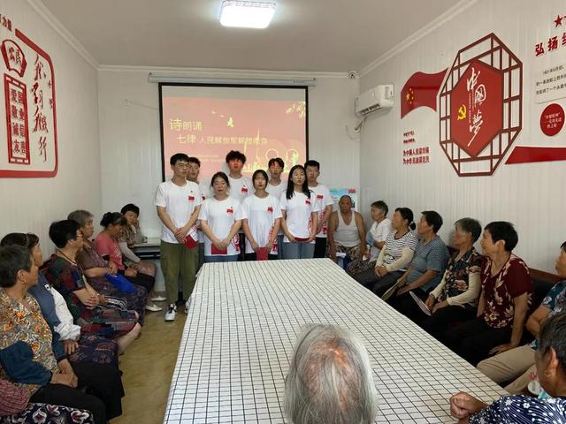 宣講團成員通過“風采-老一輩革命家在南京的故事”微展覽帶領(lǐng)社區(qū)居民領(lǐng)略了鄧小平、劉伯承、彭沖、江渭清等優(yōu)秀共產(chǎn)黨員為民、務(wù)實、清廉的精神風范。又以南京百年黨史視頻播放,重溫了自1921年南京工人運動至今,特別是改革開放以來南京的光輝歷程及巨大變化。隨后,成員齊聲朗誦《人民解放軍解放南京》、聞一多《祈禱》,演唱紅歌《沒有共產(chǎn)黨就沒有新中國》。團隊激昂向上的精神風貌感染了居民,傳遞了青春能量。