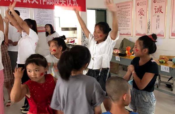 當(dāng)?shù)卮蟛糠至羰貎和勺孑呎疹?,缺少父母的關(guān)愛與陪伴,或多或少存在一些心理問題。志愿者們用心設(shè)計(jì)心理健康團(tuán)體輔導(dǎo),通過《猜拳接龍》、《比較手掌找差異》、《聽“酒”抓手指》等淺顯易懂、容易操作的心理互動(dòng)游戲,讓孩子們相互熟悉,增進(jìn)同伴間的交往;進(jìn)一步認(rèn)識(shí)自己、了解自己,懂得每個(gè)人都有自己的特點(diǎn),接納自己的不一樣,讓孩子在游戲中傳遞快樂、疏導(dǎo)情緒,在歡聲笑語(yǔ)中釋放壓力放松身心。使不同境遇下的留守孩子都能有所觸動(dòng),重新改變心態(tài)、釋放激情、積極構(gòu)建他們的童年新世界。