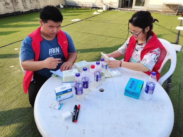 致遠(yuǎn)服務(wù)隊(duì)全體隊(duì)員在文化大院教室?guī)ьI(lǐng)胡集鎮(zhèn)的小朋友們進(jìn)行水質(zhì)調(diào)研檢測(cè)。隊(duì)員們帶回來了淮沭河水以及稻田水,讓小朋友對(duì)水質(zhì)的渾濁度、氣味進(jìn)行分類匯總。張坤建同學(xué)帶領(lǐng)小朋友進(jìn)行水質(zhì)的PH值檢測(cè),王士偉同學(xué)帶領(lǐng)進(jìn)行水里面含磷情況,通過顏色顯示度進(jìn)行數(shù)據(jù)分析。劉秋莉同學(xué)帶領(lǐng)小朋友們進(jìn)行溶解氧的檢測(cè),通過溶解物質(zhì)的顏色對(duì)比進(jìn)行分類。最后統(tǒng)計(jì)各個(gè)水質(zhì)的數(shù)據(jù)。