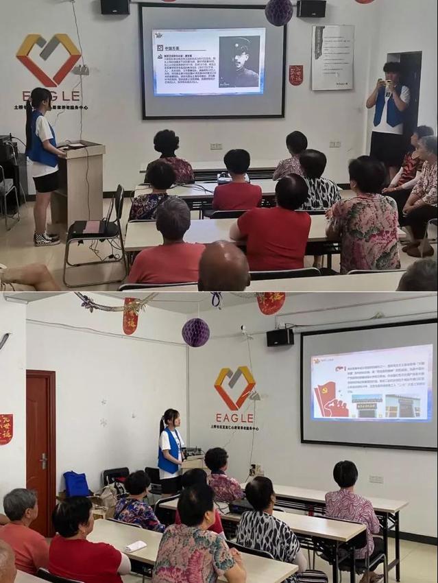 首先,帶領(lǐng)社區(qū)居民們觀看南京黨史及南京百年變遷的紅色視頻,重溫了南京這百年來的光輝歷程及巨大變化,共同追憶中國共產(chǎn)黨的崢嶸歲月。視頻畫面真實(shí)展示了抗日戰(zhàn)爭時(shí)期革命先烈面對強(qiáng)敵困境時(shí),舍生忘死的抗?fàn)幥榫?,通過回憶血與淚的崢嶸歲月激發(fā)了社區(qū)居民的愛國熱情。當(dāng)看到視頻中戰(zhàn)況激烈之處,其中一位老爺爺感慨道:“沒有共產(chǎn)黨就沒有我們現(xiàn)在的幸福生活。”是啊,沒有共產(chǎn)黨就沒有現(xiàn)在的幸福生活,感謝中國,感謝黨,感謝革命先烈。