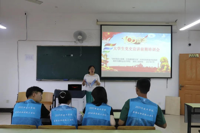 2021年7月8日,在黨總支、團(tuán)總支的指導(dǎo)下,建筑工程學(xué)院“講好黨史小故事,紅色基因薪火傳”大學(xué)生黨史宣講實(shí)踐團(tuán)在廣宇樓414舉行了前期培訓(xùn)會暨出征儀式。