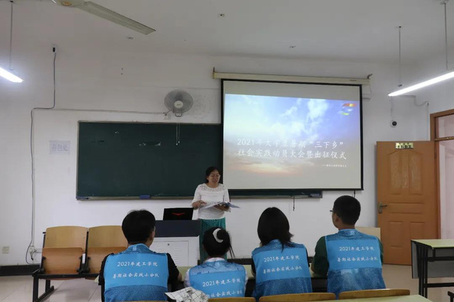 在出征儀式上,項(xiàng)目指導(dǎo)老師倪丹老師簡要介紹了“講好黨史小故事,紅色基因薪火傳”大學(xué)生黨史宣講實(shí)踐團(tuán)項(xiàng)目情況,包括主題、方向、實(shí)踐形式、規(guī)劃路線以及前期準(zhǔn)備情況等。隊(duì)長方太恒發(fā)言,并做出承諾:一切行動聽指揮,服從團(tuán)組織的安排;在實(shí)踐活動中嚴(yán)格要求自己,認(rèn)真學(xué)習(xí),互相幫助,共同提高。隨后建筑工程學(xué)院黨總支唐喜芬副書記講話,提出對此次暑期“三下鄉(xiāng)”活動的建議和希望,特別強(qiáng)調(diào)實(shí)踐活動安全問題,注意出行安全。