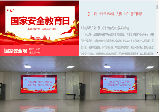 2022年4月15日,是第7個(gè)全民國(guó)家安全教育日。為豐富師生國(guó)家安全知識(shí),提高師生維護(hù)國(guó)家安全的意識(shí),結(jié)合當(dāng)前疫情防控的形勢(shì),軌道交通學(xué)院借助新媒體、用好新資源、采取新形式,組織開展了一系列形式多樣、內(nèi)容豐富的國(guó)家安全教育宣傳活動(dòng),把國(guó)家安全的“種子”播到每個(gè)人心里,強(qiáng)化師生保護(hù)國(guó)家安全意識(shí),為迎接黨的二十大勝利召開營(yíng)造良好氛圍。