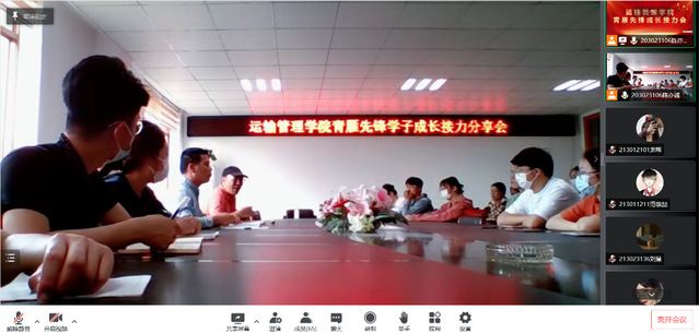 為發(fā)揚運輸管理學(xué)院學(xué)生會工作優(yōu)良傳統(tǒng),更好傳承“青雁先鋒”頭雁領(lǐng)航精神,發(fā)揮先優(yōu)學(xué)生楷模作用,搭建學(xué)生朋輩交流互鑒平臺,運輸管理學(xué)院于5月26日在齊賢樓420室通過“線上+線下”的方式開展了“青雁先鋒學(xué)子成長接力分享會”活動。此次會議由學(xué)生會主席團成員陳諾主持,運輸管理學(xué)院黨總支副書記葛明亮、團總支書記周寸飛、第十五屆學(xué)生會代表、第十六屆學(xué)生干部及21級學(xué)生會全體成員參加了本次會議。