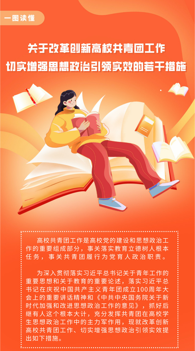 為深入貫徹習(xí)近平總書記關(guān)于共青團(tuán)在高校學(xué)生思想政治工作中要發(fā)揮主力軍作用的重要要求,近日,共青團(tuán)中央、教育部黨組印發(fā)了《關(guān)于改革創(chuàng)新高校共青團(tuán)工作 切實增強(qiáng)思想政治引領(lǐng)實效的若干措施》,并發(fā)出通知,要求各地區(qū)各高校抓好貫徹落實。