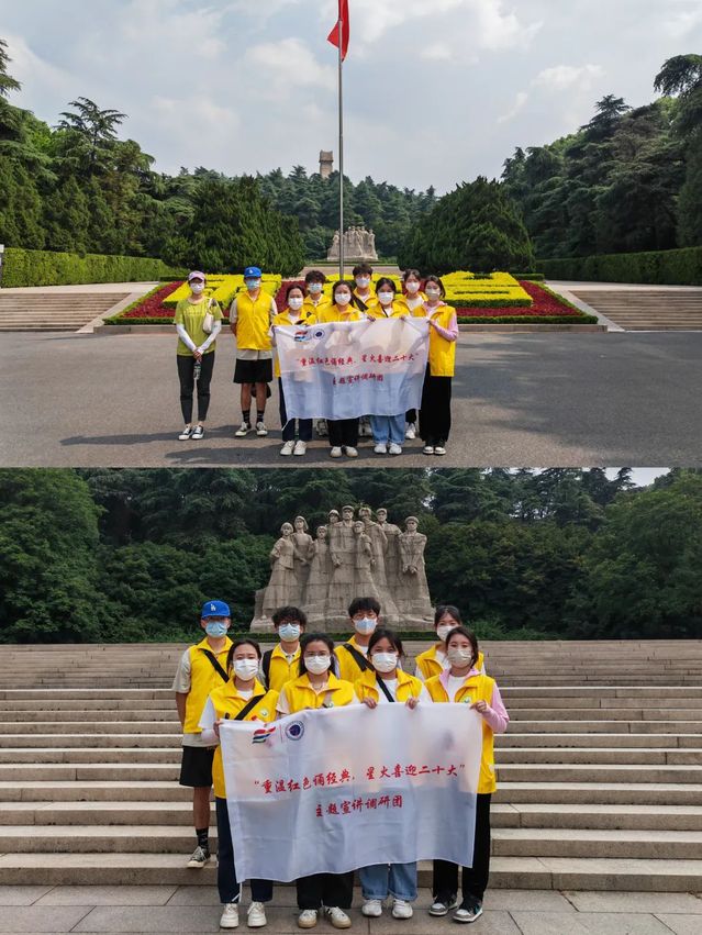在中國(guó)共青團(tuán)成立100周年之際,為傳承紅色基因,筑牢強(qiáng)國(guó)夢(mèng)想,喜迎黨的二十大,團(tuán)結(jié)引領(lǐng)青年堅(jiān)定和黨走、建功新時(shí)代,由2130421班陸佳怡、2130511班馮佳慧、2130212班程成、張恒瑜、張藝、王昕月、2130111班陳梓豪和2130412班王建翔同學(xué)組成的“重溫紅色誦經(jīng)典,星火喜迎二十大”主題宣講調(diào)研團(tuán)第一站來(lái)到南京市雨花臺(tái)烈士陵園探訪革命舊址,追尋紅色記憶,朗誦文化經(jīng)典。