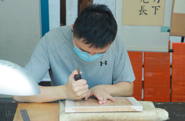在揚州中國雕版印刷博物館,實踐隊參觀了解了史前時期陶器石器、漢唐時期瓷器玉器、漆木雜項,“海絲”“陸絲”遺珍、揚州畫派代表作品等,并重點對雕版印刷術(shù)進行了深入調(diào)研和體驗。通過對雕版印刷傳承人及制作人的采訪,實踐隊了解了雕版印刷術(shù)的特點和歷史,雕版印刷術(shù)以其繁多的種類廣泛應(yīng)用于中國古代社會生活的各個領(lǐng)域,是中國對世界文明最卓著的貢獻之一。據(jù)傳承人介紹,雕版印刷術(shù)的傳承和弘揚仍面臨一些挑戰(zhàn),尤其受疫情影響,需要加大宣傳力度,更好地推動雕版印刷文化傳承。