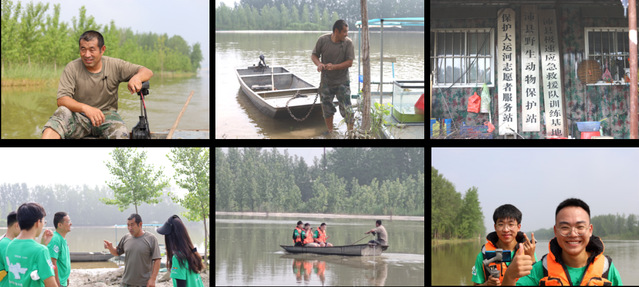 實(shí)踐隊(duì)員們首先來(lái)到了湖西農(nóng)場(chǎng)王嶺村,這里是“運(yùn)河守護(hù)者”王大亮的家鄉(xiāng),他自兩歲起就生活在運(yùn)河邊,對(duì)運(yùn)河有著無(wú)法言喻的深厚感情。沿著運(yùn)河一直南行,岸堤旁有一廂簡(jiǎn)易集裝箱房,這里便是王大亮及其家人的住所。王大亮熱情接待了實(shí)踐團(tuán)隊(duì),并邀請(qǐng)隊(duì)員們來(lái)到木船上,一起體驗(yàn)巡河工作。在船上,實(shí)踐隊(duì)員采訪了王大亮,因?yàn)楦赣H臨終前的一句“大亮,你一定要將運(yùn)河保護(hù)好”,他便從父親手中接替了守護(hù)運(yùn)河這一重任,而這一守護(hù)就是十三載,風(fēng)雨無(wú)阻,無(wú)怨無(wú)悔。王大亮在守護(hù)運(yùn)河的過(guò)程中,不僅維護(hù)環(huán)境讓運(yùn)河變得清潔,還先后救助了群眾17人,他因此獲評(píng)“江蘇省見(jiàn)義勇為先進(jìn)個(gè)人”榮譽(yù)稱號(hào)并榮登江蘇好人榜。