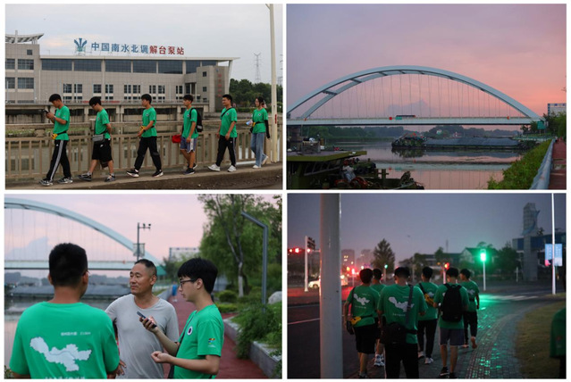 離開馬莊村后,實踐團隊來到了賈汪區(qū)解臺村。這里的解臺閘建設(shè)在京杭大運河之上,是徐州地區(qū)重要的水上交通樞紐之一,也是我國南水北調(diào)的重要工程。解臺閘下游不遠處是賈汪區(qū)大吳濱河公園,隊員們在傍晚時分來到這里,欣賞大運河美麗夕陽的同時,通過電子調(diào)查問卷和采訪的方式開展調(diào)研,被調(diào)研的當?shù)鼐用窦娂姳硎緦\河有著深厚的感情,對運河周邊環(huán)境治理的成效也非常滿意。