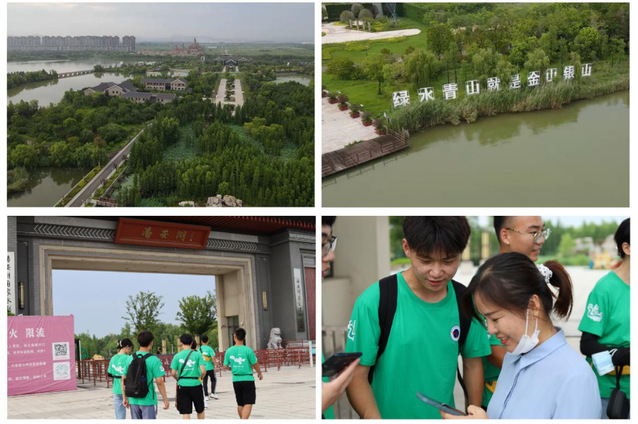 臨靠馬莊村的潘安湖濕地公園是在煤礦塌陷區(qū)的基礎(chǔ)上建成的,通過無人機航拍,實踐團隊清晰地看到公園內(nèi)的整齊規(guī)劃和秀麗風光。實踐隊員在此開展問卷調(diào)查,進一步了解潘安湖濕地公園的生態(tài)修復和濕地建設(shè)成效。