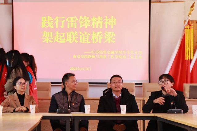 2023年3月5日是第60個“學習雷鋒日”。在此特殊的時間節(jié)點,2023年南京交通職業(yè)技術學院路橋與港航工程學院青馬班正式開班。青馬班第一期地點選在江寧區(qū)佘村,此次學習活動,路橋與港航工程學院邀請了江蘇經貿職業(yè)技術學院金融學院部分老師擔任特別嘉賓。