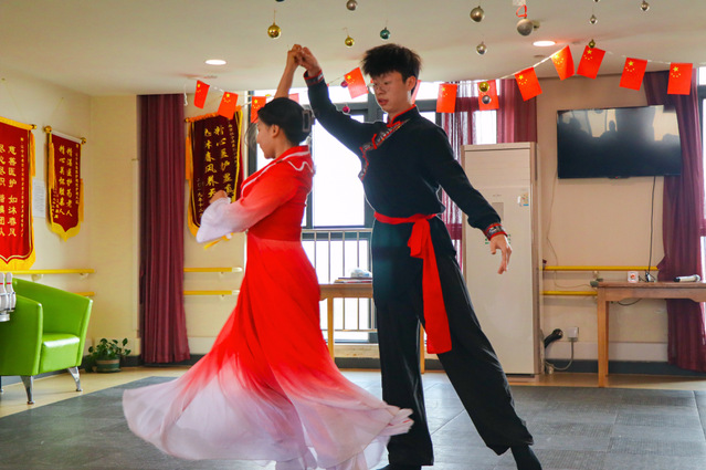 本次志愿活動,首先面向護理院失能老人群體,為老人們進行慰問演出,雙方共籌備十余項演出節(jié)目,包括《保衛(wèi)黃河》合唱、《長江之歌》獨舞、武術表演等老年人喜聞樂見的節(jié)目。在40分鐘的表演過程中,掌聲、歡笑聲此起彼伏,現場其樂融融,大家用實際行動把愛心和溫暖送到老人的心坎上,讓他們切身感受到來自社會的溫暖。