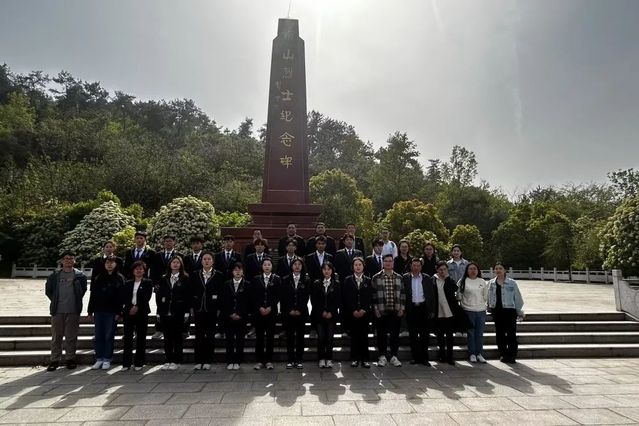 當(dāng)日下午同學(xué)們懷著對烈士的崇敬之情前往橫山烈士紀(jì)念碑瞻仰、吊唁,共同緬懷為戰(zhàn)爭獻(xiàn)身國家的新四軍革命烈士,學(xué)習(xí)了人民英雄的先進(jìn)事跡,寄托了同學(xué)們無限的哀思和敬意。在橫山新四軍紀(jì)念館中,解講員生動形象地為我們講述了其父陶家齊烈士在抗日戰(zhàn)爭中被敵人包圍逮捕誓死守衛(wèi)我方情報(bào),堅(jiān)貞不屈,誓不招供,最后壯烈犧牲的英雄事跡。橫山烈士紀(jì)念碑、橫山新四軍紀(jì)念館時刻提醒著師生們:如今的美好生活是這些英雄先烈們用鮮血一點(diǎn)一滴鋪出來的,他們在祖國和人民最需要的時候站了出來,他們的精神事跡令人欽佩,值得學(xué)習(xí)與宣揚(yáng)。