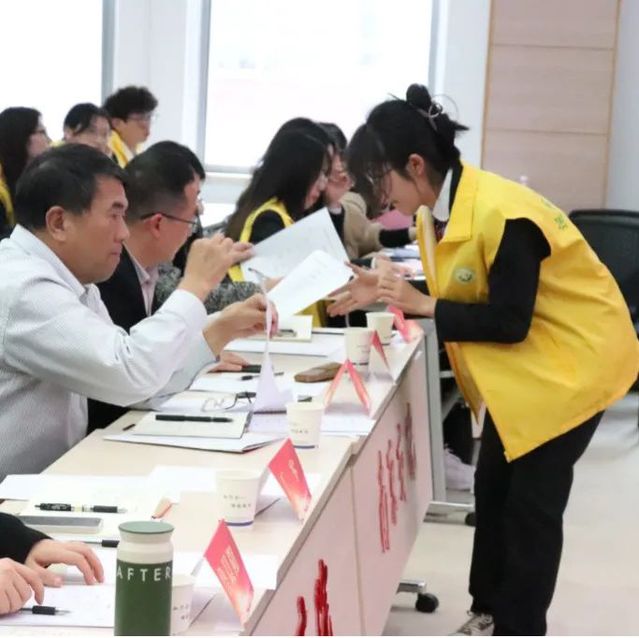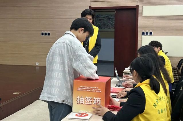 比賽當(dāng)天,志愿者全部提前到崗,整個會議廳都是穿著黃馬甲的志愿者們忙碌的身影。他們認(rèn)真指導(dǎo)參賽者們簽到抽簽,細致地幫助參賽者們提交參賽資料,帶領(lǐng)參賽者們提前彩排,解答帶隊老師們的相關(guān)疑問,充分展現(xiàn)了自己的專業(yè)服務(wù)、認(rèn)真態(tài)度和“全心全意為人民服務(wù)”的雷鋒精神。