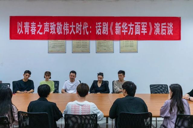 演出結(jié)束后,校學(xué)生干部代表和劇中主要演員在圖書館B201開展了以青春之聲致敬偉大時(shí)代:話劇《新華方面軍》演后談,學(xué)生們紛紛表示,劇中很多臺詞都很令人感動??箲?zhàn)時(shí)期,在炮火連天的戰(zhàn)場上,報(bào)人敢于報(bào)道真相的執(zhí)著和勇氣讓人欽佩,他們并非天生就是英雄,卻在屢經(jīng)撲打后巍然屹立,這正是理想和信仰的力量。