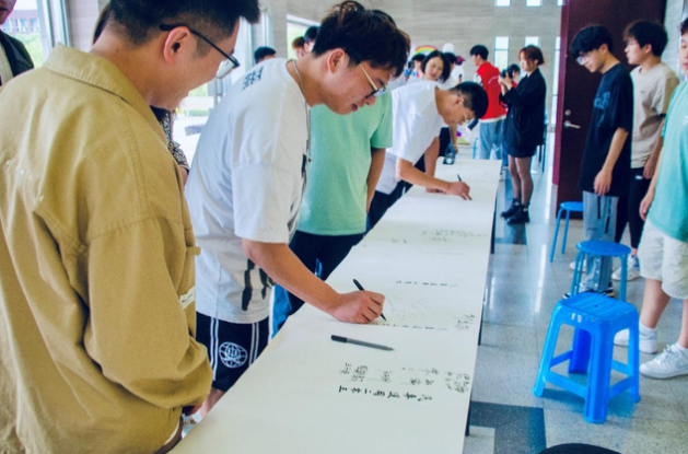 畢業(yè)生們?cè)诹粞园迳戏窒硇那椋粝鲁砷L(zhǎng)感知,在“寄語(yǔ)盲盒”中抽取自己的專屬書(shū)簽和明信片,帶走學(xué)院師生的美好祝福。大學(xué)生活轉(zhuǎn)瞬即逝,回首往事,心懷不舍,感慨萬(wàn)千,短短半天時(shí)間,留言板上就寫(xiě)滿了真摯的寄語(yǔ)和心情,每一個(gè)字每一句話都包含著他們對(duì)母校的深情厚誼,同時(shí)也流露出他們對(duì)未來(lái)人生的美好憧憬。