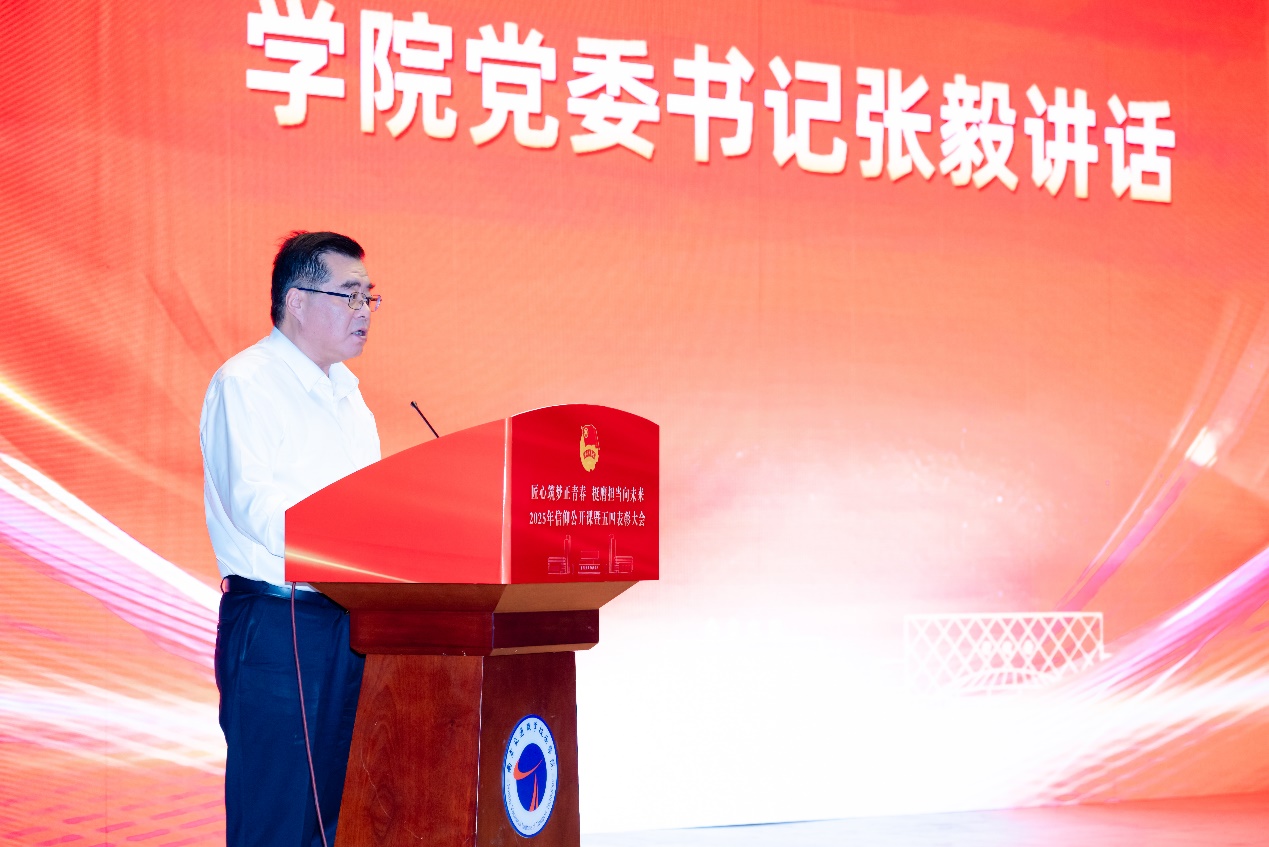為深入貫徹落實(shí)習(xí)近平總書記關(guān)于青年工作的重要思想,5月7日下午,學(xué)院在圖書館報(bào)告廳舉行“匠心筑夢正青春 挺膺擔(dān)當(dāng)向未來”2025年信仰公開課暨五四表彰大會,紀(jì)念五四運(yùn)動106周年,表彰先進(jìn)青年典型,傳承五四精神。學(xué)院黨委書記張毅、院長王道峰、副書記文愛民、副院長劉雪芬,相關(guān)部門負(fù)責(zé)人,各院系黨總支副書記、分團(tuán)委書記與500余名青年師生代表齊聚一堂,共赴青春之約。