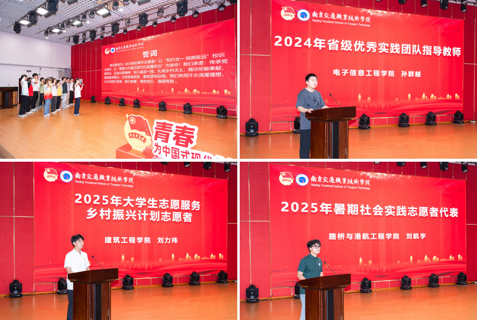 今年,校團(tuán)委成立了16支暑期社會實踐團(tuán)隊和1支紅色研學(xué)團(tuán)隊,同時組織動員全校青年積極參加“返家鄉(xiāng)”社會實踐活動。今天出征儀式后,161名師生將奔赴省內(nèi)外各地開展鄉(xiāng)村振興、基層服務(wù)、民族團(tuán)結(jié)、愛國主義教育、中華文化傳承、職業(yè)探索等實踐活動,在深入觀察與躬身實踐中踐行“青春為中國式現(xiàn)代化挺膺擔(dān)當(dāng)”的時代主題,踔厲奮發(fā),以實際行動展現(xiàn)交院學(xué)子的青春擔(dān)當(dāng)。