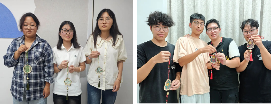 活動(dòng)初始,創(chuàng)新實(shí)踐部趙曉媛同學(xué)向大家講解了宋錦的歷史與工藝特點(diǎn),讓大家快速了解到“中國(guó)三大名錦”之一宋錦的魅力?;顒?dòng)開(kāi)始后,同學(xué)們手持宋錦面料、珍珠、鈴鐺等材料,在制作視頻的指導(dǎo)下裁剪錦緞、穿珠引線、固定風(fēng)鈴骨架,巧妙地將傳統(tǒng)織錦與靈動(dòng)元素相結(jié)合。當(dāng)一個(gè)個(gè)融合宋錦雅致紋樣與珍珠光澤的風(fēng)鈴制作完成時(shí),輕晃風(fēng)鈴,清脆聲響伴著錦緞微動(dòng),盡顯非遺與生活美學(xué)的碰撞。