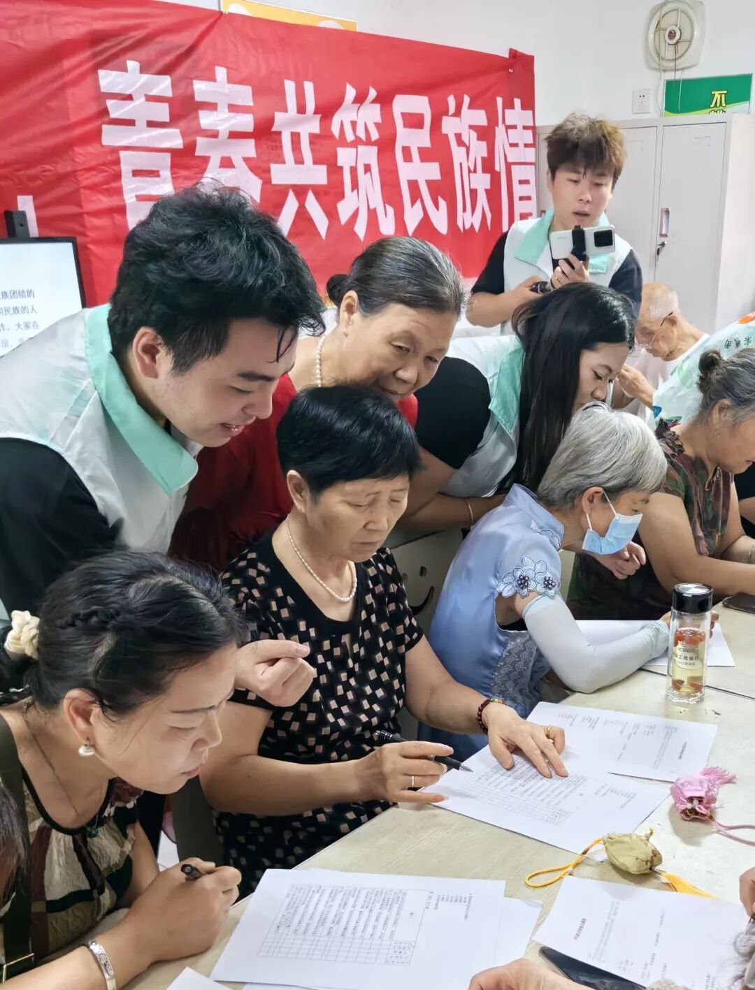 鎮(zhèn)江社區(qū)的“香綴千秋橋?情暖石榴紅”活動現(xiàn)場,隊(duì)員們用課件講解各族香囊文化:回族幾何紋樣寄寓對生活的熱愛,漢族艾草香囊承載平安祈愿,讓老人們深入了解香囊作為文化載體的內(nèi)涵。各族老人圍坐協(xié)作制作香囊,歡聲笑語中,各族文化故事自然交流。