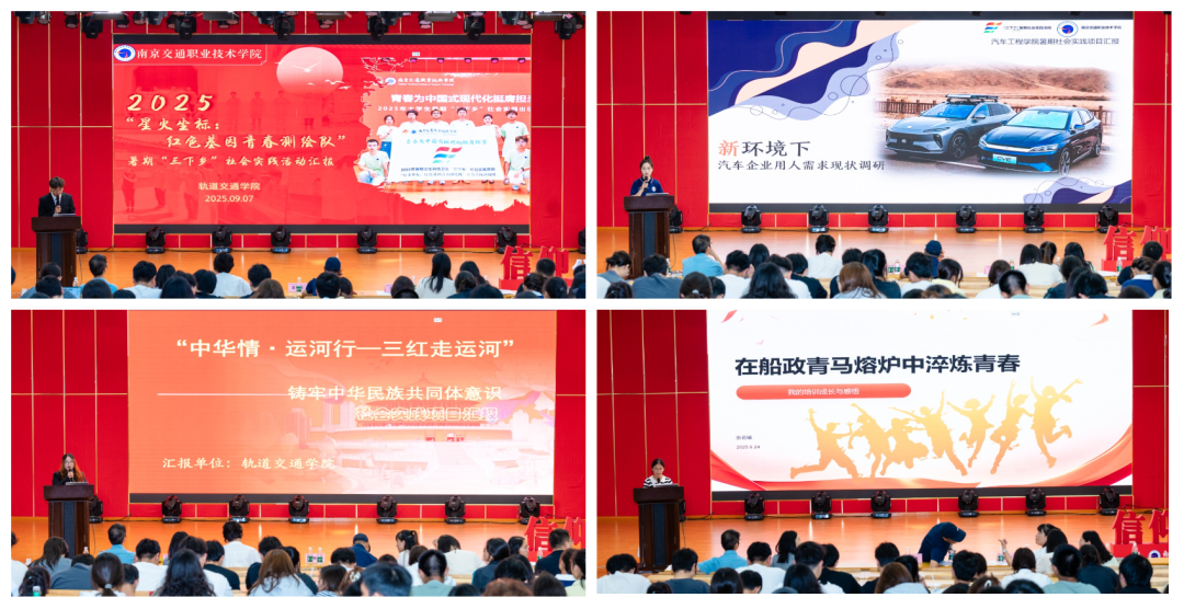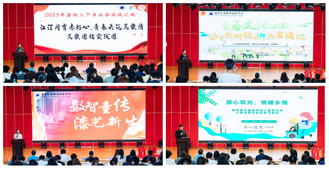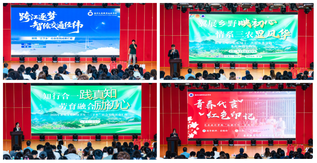 活動(dòng)現(xiàn)場(chǎng),各團(tuán)隊(duì)聚焦鄉(xiāng)村振興、基層服務(wù)、民族團(tuán)結(jié)、愛(ài)國(guó)主義教育、中華文化傳承、職業(yè)探索等主題,以多元形式生動(dòng)展示了實(shí)踐成果。汽車工程學(xué)院圍繞新能源汽車產(chǎn)業(yè)與鄉(xiāng)村服務(wù),通過(guò)科技助農(nóng)、心理關(guān)懷等方式助力鄉(xiāng)村振興與社會(huì)服務(wù);路橋與港航工程學(xué)院融合智能建造與非遺傳承,運(yùn)用AIGC等技術(shù)活化傳統(tǒng)文化,探索科技與文化結(jié)合的新方式;運(yùn)輸管理學(xué)院圍繞交郵融合與勞動(dòng)教育,深入企業(yè)與田間地頭,探索城鄉(xiāng)物流降本增效新模式,促進(jìn)產(chǎn)業(yè)鏈與育人鏈深度融合;電子信息工程學(xué)院發(fā)揮數(shù)字技術(shù)優(yōu)勢(shì),開(kāi)展無(wú)人機(jī)助農(nóng)與非遺數(shù)字化實(shí)踐,搭建科技服務(wù)平臺(tái),以創(chuàng)新應(yīng)用助力鄉(xiāng)村發(fā)展與文化傳承;軌道交通學(xué)院圍繞紅色基因傳承與民族團(tuán)結(jié),通過(guò)實(shí)地研學(xué)、精品團(tuán)課與民族鄉(xiāng)村共建,深化思想引領(lǐng),促進(jìn)各民族交往交流交融;建筑工程學(xué)院依托專業(yè)特色,以數(shù)字技術(shù)賦能紅色建筑保護(hù),推動(dòng)實(shí)踐基地建設(shè),實(shí)現(xiàn)紅色傳承與民族團(tuán)結(jié)教育雙融合;藝術(shù)設(shè)計(jì)學(xué)院深入紅色地標(biāo)開(kāi)展創(chuàng)新傳播,通過(guò)文創(chuàng)設(shè)計(jì)、云端課堂與直播助農(nóng),拓展紅色文化表達(dá)方式,賦能鄉(xiāng)村發(fā)展與精神傳承;馬克思主義學(xué)院運(yùn)用全景拍攝、無(wú)人機(jī)航拍等技術(shù)實(shí)現(xiàn)紅色資源數(shù)字化,探索“云參觀”與現(xiàn)場(chǎng)教學(xué)有機(jī)融合的數(shù)字時(shí)代紅色育人新路徑。各學(xué)院實(shí)踐團(tuán)隊(duì)各展所長(zhǎng)、成效扎實(shí),共同繪就了學(xué)院2025年暑期社會(huì)實(shí)踐百花齊放的生動(dòng)畫卷。