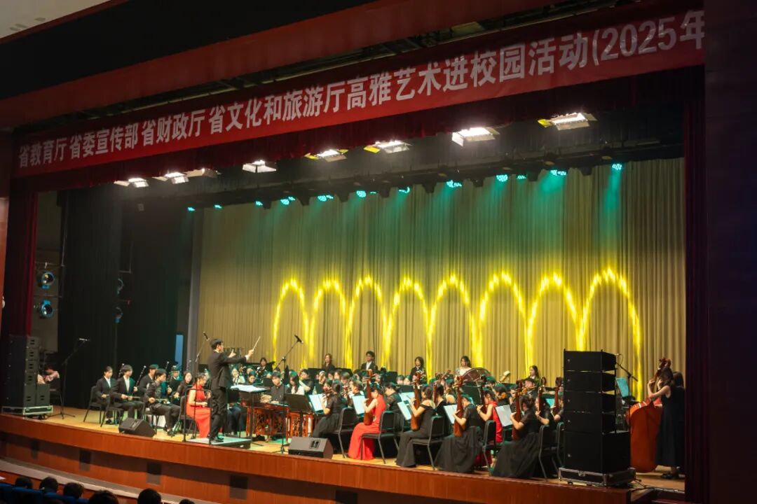2025年11月11日晚19時,南京曉莊學院音樂學院民樂團走進我校,在圖書館報告廳成功舉辦了由省教育廳、省委宣傳部、省財政廳、省文化和旅游廳主辦的“高雅藝術進校園”民族管弦音樂會。此次活動是兩校深化美育合作、推動文化育人的重要實踐,為我校師生帶來了一場極具感染力的中華優(yōu)秀傳統(tǒng)文化視聽盛宴。