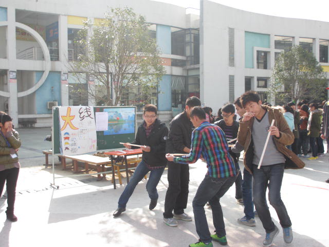 為了豐富學(xué)生的課余生活,提高綜合素質(zhì),挖掘內(nèi)在潛能,培養(yǎng)團結(jié)協(xié)作的精神,11月28日下午,學(xué)工處在思源堂廣場舉辦了第四屆公寓文化節(jié)之“寢室吉尼斯”活動。