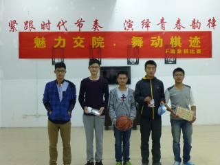 比賽中,大家沉著應戰(zhàn),見招拆招、你來我擋在無聲的棋盤戰(zhàn)場上進行激烈拼殺。經(jīng)過五輪比賽角逐,最終來自F南215室的渠懸同學沖出重圍,勇奪桂冠;來自F南207室的唐淼同學屈居第二;來自F南413室的曹興鑫同學獲得第三名,來自F南117室的時永成同學獲得第四名。