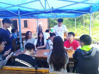 活動(dòng)當(dāng)天早上雖然下起了雨,但是仍然擋不住高校之間同學(xué)們的期盼與熱情。同學(xué)們撐傘漫步山道,欣賞了方山雨景,交流了生活經(jīng)驗(yàn),一路有說有笑。路途雖遠(yuǎn),但每位同學(xué)都保持秩序,遵守注意事項(xiàng),互相照看。聯(lián)誼活動(dòng)不僅包括“蘿卜蹲”“疊報(bào)紙”等培養(yǎng)合作,交流能力的游戲,也有像“狼人殺”這樣輕松,刺激的游戲。充分鍛煉的大學(xué)生適應(yīng)團(tuán)體和工作團(tuán)隊(duì)的能力,也讓每位同學(xué)收獲了友誼?;顒?dòng)之后的午餐時(shí)間,由自管會(huì)準(zhǔn)備燒烤器具,食材等,各高校同學(xué)之間親手制烤,每位同學(xué)都充分體驗(yàn)了野外燒烤的樂趣,積累了野外游玩的經(jīng)驗(yàn),也拉近了彼此之間的距離。