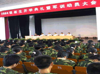 2004年8月29日,繼開(kāi)學(xué)典禮后,我院2004級(jí)新生軍訓(xùn)動(dòng)員大會(huì)分別在學(xué)院大禮堂和珠江校區(qū)舉行。學(xué)院黨委書(shū)記、院國(guó)防教育領(lǐng)導(dǎo)小組組長(zhǎng)史國(guó)君同志,副院長(zhǎng)、院國(guó)防教育領(lǐng)導(dǎo)小組副組長(zhǎng)王曉農(nóng)同志;承訓(xùn)部隊(duì)副政委謝玉和同志,副參謀長(zhǎng)蔡松美同志;海軍指揮學(xué)院浦口分院院長(zhǎng)李陸冀同志,以及我院國(guó)防教育領(lǐng)導(dǎo)小組辦公室的同志分別出席了兩校區(qū)的動(dòng)員大會(huì)。大會(huì)由學(xué)院保衛(wèi)處處長(zhǎng)、院國(guó)防教育領(lǐng)導(dǎo)小組辦公室主任祁國(guó)新同志主持。史國(guó)君書(shū)記作了動(dòng)員講話。
